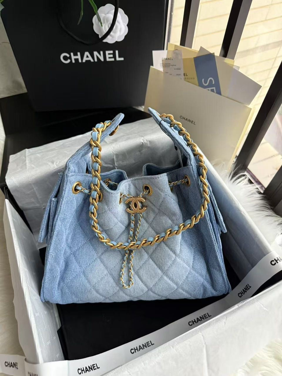 Chanel Hobo Denim Blue with Brand Box